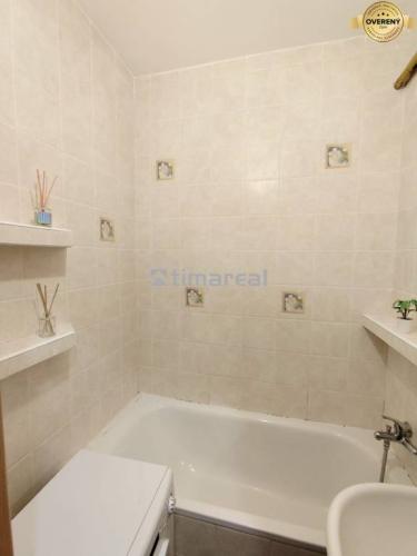 samostatná kúpeľňa s vaňou a staršou práčkou
