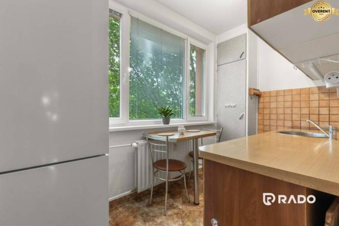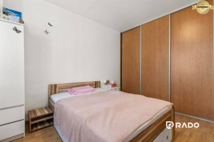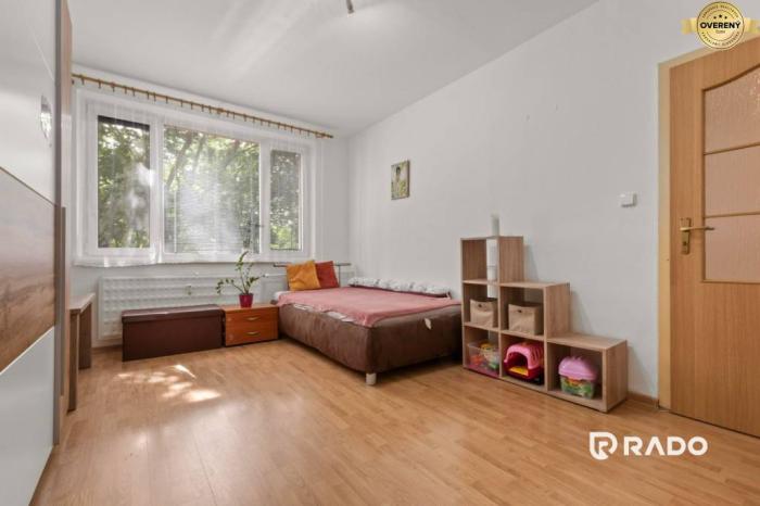 Má výbornú DISPOZÍCIU: vojdete do priestrannej vstupnej chodby, po ľavej strane sa nachádza izba s balkónom, spálňa so vstavanou skriňou, po pravej strane obývacia miestnosť, kuchyňa, kúpeľňa s vaňou, samostatná toaleta.