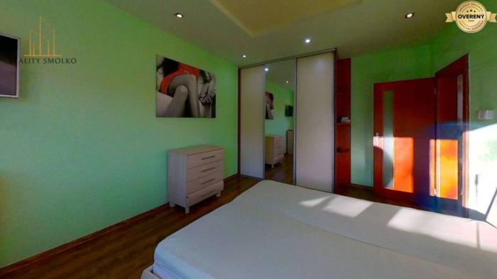 Byt je slnečný, útulný a vkusne zariadený. Vstup do bytu je chránený bezpečnostnými dverami. V chodbe je vešiaková stena a vstavaná skriňa so zrkadlom. Dve izby, spálňa a detská izba sú orientované na juh, čo zabezpečuje dostatok svetla a tepla po celý rok, kuchyňa a obývacia izba sú orientované na severnú stranu. V byte sú plastové okná, v chodbe keramická dlažba, v izbách je plávajúca podlaha, v kuchyni je kuchynská linka, elektrický sporák, digestor, chladnička a mikrovlná rúra. WC je samostatné. V kúpeľni je nový sprchovací kút, umývadlo, skrinka s odkladacím priestorom, zrkadlo a práčka. V detskej izbe je posteľ, písací stôl, a skrinka s poličkami. V spálni je manželská posteľ, dve skrine, jedna so zrkadlom, skrinka a TV prijímač. V obývačke je menší písací stolík, nábytková stena s TV stolíkom, na ktorom je TV prijímač. K bytu je aj pivnica.
