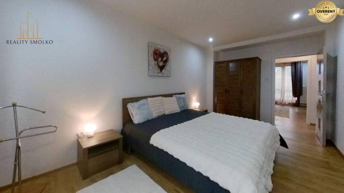 Výmera bytu je 65 m². Vstup do bytu je chránený bezpečnostnými dverami. Spálňa je situovaná na južnú stranu, Dve izby, obývačka a detská izba sú situované na sever. V kuchyni je nová kuchynská linka, plynový sporák s el. rúrou, mikrovlnná rúra, autom. práčka a chladnička s mrazničkou. Zariadenie je úplne nové. Kúpeľňa je zrekonštruovaná, nachádza sa v nej sprchovací kút, umývadlo a odkladacie skrinky. Výhodou je samostatné WC. V chodbe, v kúpeľni a vo WC je keramická dlažba, v kuchyni je plávajúca podlaha, v izbách sú plávajúce podlahy. Byt má ústredné kúrenie. K bytu prináleží aj murovaná pivnica.