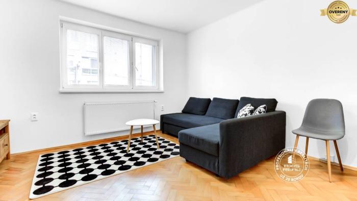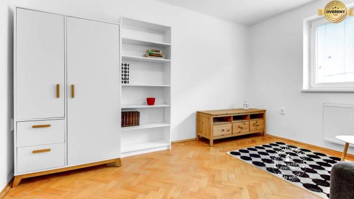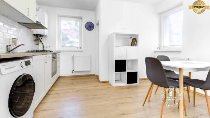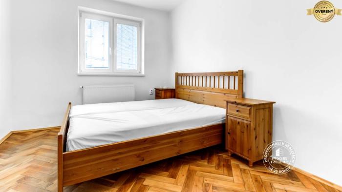 Kompletne zrekonštruovaný byt s novou kuchynskou linkou, ktorá je kompletne vybavená spotrebičmi (práčka, chladnička aj umývačka riadu), plastové okná so žalúziami, plávajúca podlaha v kuchyni, drevené parkety v izbách, dlažba v príslušenstve. V byte je samostatné kúrenie a ohrev vody - plynový kotol je zabudovaný v kuchynskej linke. Byt je zariadený. V obývacej izbe je sektorový nábytok a gauč, v spálni šatníková skriňa a manželská posteľ.
