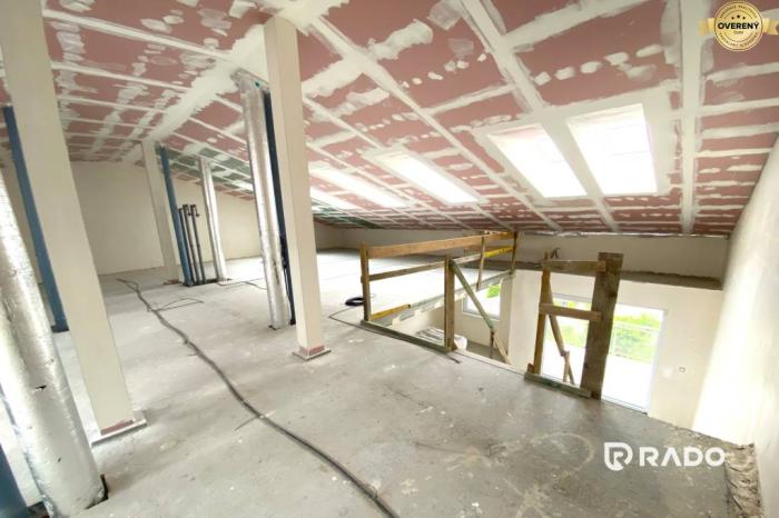 Spodné podlažie dispozične pozostáva zo vstupnej chodby, na ľavej strane sa nachádza priestranná spálňa (17,4 m2), samostatné WC a kúpeľňa. Denná časť bytu je tvorená veľkým otvoreným priestorom (46,95 m2) spájajúcim kuchyňu s jedálňou a obývačkou. Z obývačky sa schodmi dostanete na druhé poschodie, kde na Vás čaká úžasný priestor s výmerou 171 m2! Žiadne kompromisy - priestor si navrhnete presne podľa Vašich predstáv - na tomto poschodí ešte nie sú vybudované priečky, a tak Vy sami rozhodnete, či tu budete mať jednu, dve, tri alebo aj štyri izby! Ak máte radi romantiku, môžete si tu vybudovať aj krb a užívať príjemnú atmosféru. Plusom tohto bytu je tiež veľká loggia (13,8 m2), na ktorej si môžete vychutnať rannú kávu, či večerný pohár vína pri pohľade na zapadajúce slnko. Obrovským benefitom je nainštalovaná klimatizácia. K bytu prislúcha aj pivnica (2 m2) a možnosť dokúpenia parkovacieho miesta.