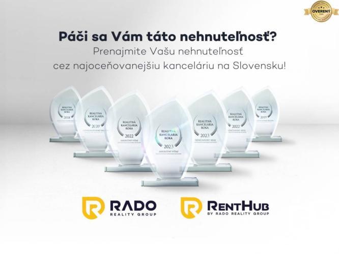 RADO Reality Group je ocenená Realitnou úniou ako najlepšia realitná kancelária na Slovensku za rok 2023. Okrem iného sme držiteľmi ďalších 6 prestížnych ocenení.
