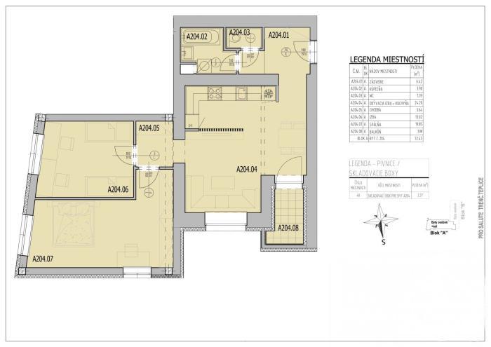 3 izby , 1 poschodie, balkón 3,08 m2, pivnica 3,37 m2 celková výmera 79.26 m2