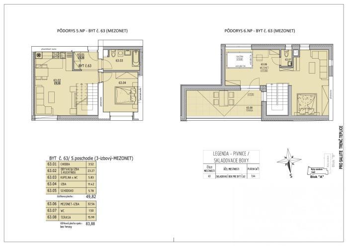 3 izby, 4 a 5 poschodie - mezonet, celková výmera 103,31 m2