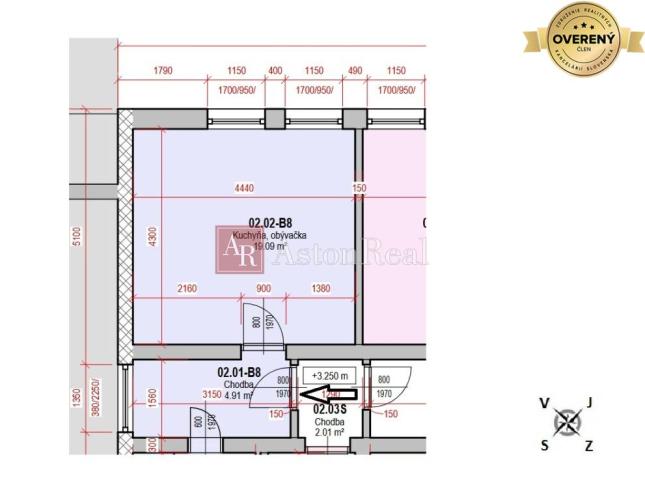 Orientácia bytu je JV. K bytu patrí murovaná pivnica, cca 2,07m2.
