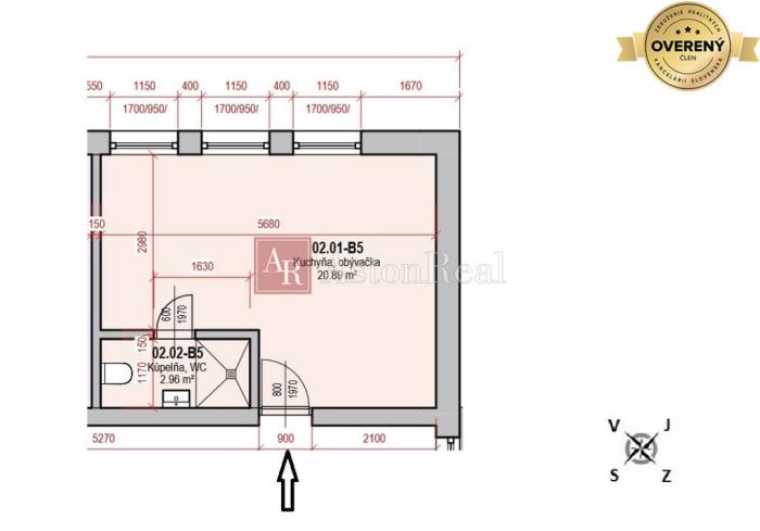 Orientácia bytu je JV. K bytu patrí murovaná pivnica, cca 2,5m2.