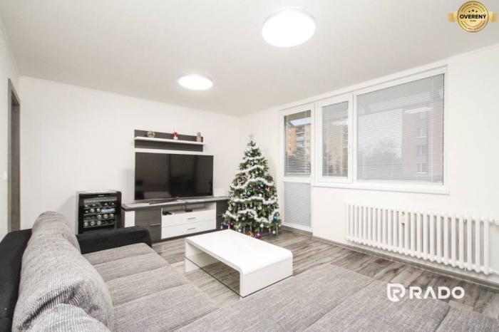 RADO Reality Vám ponúka na predaj 3-izbový byt na ulici Gen. Svobodu v Trenčíne na sídlisku Juh. Byt s rozlohou 73m2 sa nachádza na 5. poschodí zo 7, v zateplenom panelovom dome s výťahom. Bytový dom má okrem zateplenia zrekonštruované spoločné priestory, vchodové dvere s elektronickým vrátnikom, zrekonštruovanú strechu, plastové okná a bola tiež vykonaná aj rekonštrukcia balkónov a stupačiek. V nadchádzajúcom roku je plánovaná aj kompletná rekonštrukcia výťahu. K bytu prislúcha aj balkón s rozlohou približne 6m2 a pivnica s rozlohou 2m2.