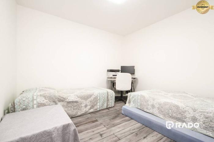 Byt je kompletne zrekonštruovaný. Boli vymenené bezpečnostné vstupné dvere, interiérové dvere so zárubňami, podlahy, elektrické rozvody, rozvody vody aj odpadu, murované a zväčšené jadro, sadrokartónové stropy a mnoho iného. Vstavané skrine a kuchynská linka so vstavanými spotrebičmi v byte samozrejme zostávajú. Majitelia si vezmú najmä elektroniku, práčku a sušičku. Ostatné zariadenie môže/nemusí v byte zostať po dohode s majiteľmi.