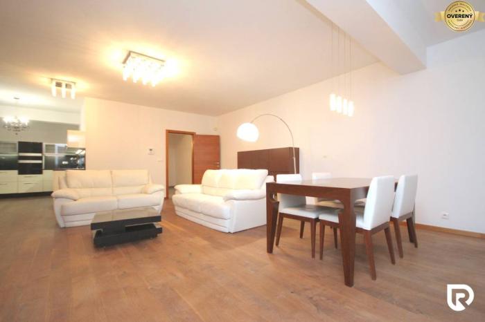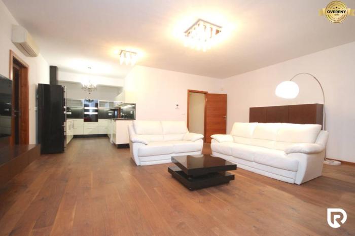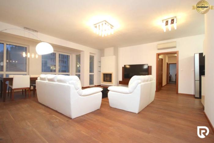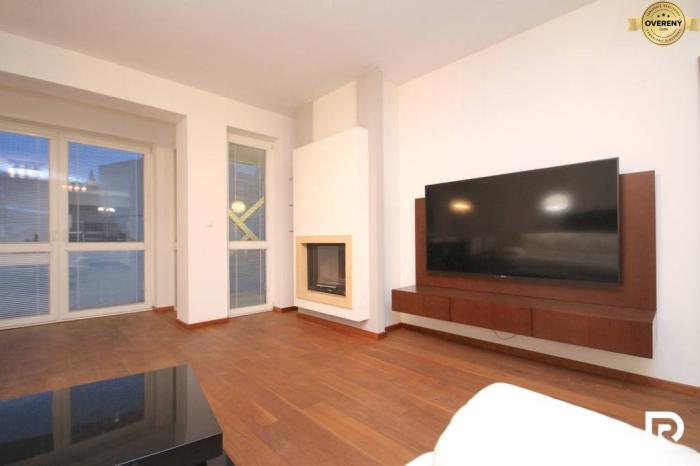 Dispozične byt pozostáva zo vstupnej chodby, z ktorej sa vchádza do samostatnej toalety, do samostatného šatníka a do priestrannej obývačky s kuchyňou. Z kuchyne je vstup do špajze. Z obývačky sa ďalej chodbou dostaneme do troch samostatných izieb, kúpeľne s toaletou a technickej miestnosti. V spálni sa nachádza aj samostatný šatník a vstup do vlastnej kúpeľne s vaňou, sprchovým kútom aj toaletou. Vstup na terasu je z každej izby. Z pracovne sa dostanete na druhú terasu vo vnútrobloku domu. Byt je orientovaný na juhovýchod. Teplotu v miestnostiach si viete regulovať vďaka klimatizačnej jednotke. Zimné večery Vám môže spríjemniť zabudovaný krb v obývačke. Tento byt je ideálnym riešením pre komfortné a praktické bývanie. Byt sa predáva zariadený, tak ako vidíte na fotografiách.