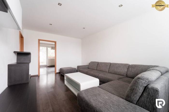 Byt je čiastočne zrekonštruovaný – zachoval si praktické dispozície a poskytuje komfortné bývanie s možnosťou ďalšej modernizácie podľa vlastných predstáv. Ústredná hala prirodzene prepája všetky miestnosti a vytvára pocit vzdušného a otvoreného priestoru.