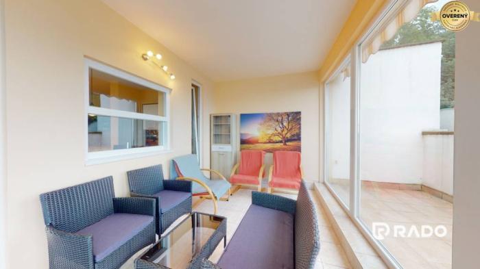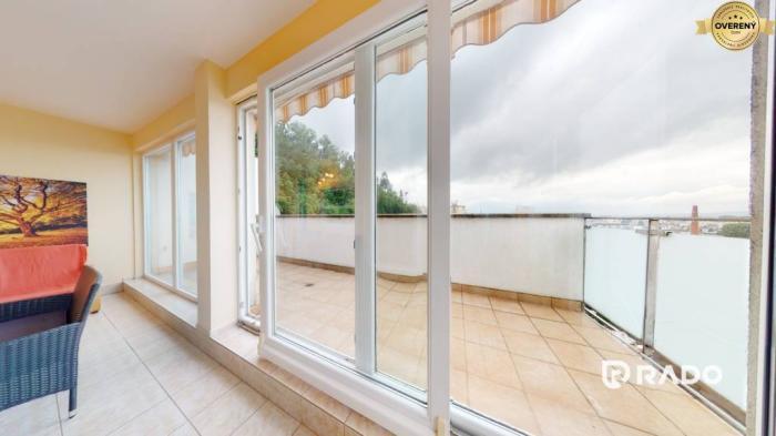 IBA U NÁS!!! RADO Reality ponúka na prenájom priestranný 3-izbový byt priamo v centre mesta Trenčín na Hviezdoslavovej ulici. Byt s výmerou 100m2 sa nachádza na 5. poschodí bytového domu s výťahom. Má dve terasy a uzavretú zimnú záhradu, ktorá vďaka podlahovému kúreniu poskytuje v zimných mesiacoch priestor pre príjemné posedenie a relax.