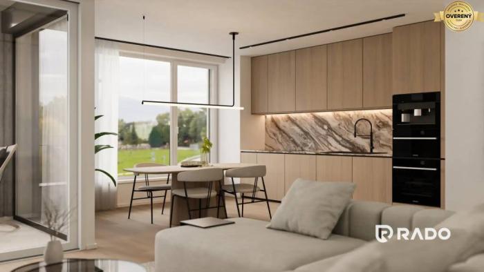 Špičkové hliníkové okná s izolačným trojsklom, zdvižno-posuvné dvere so skrytým prahom pre bezbariérový prístup na loggiu, ako aj centrálne ovládané exteriérové tienenie zabezpečujú maximálne pohodlie a energetickú efektivitu. Byt bude dokončený vo vysokom štandarde s výberom prémiových podláh, obkladov, sanity a dverí od renomovaných značiek.