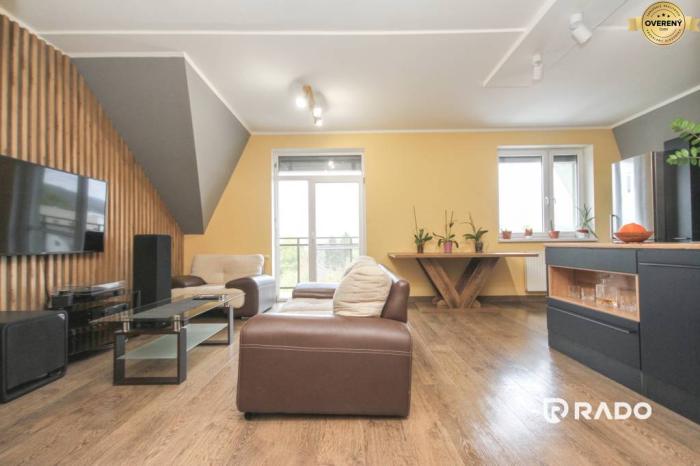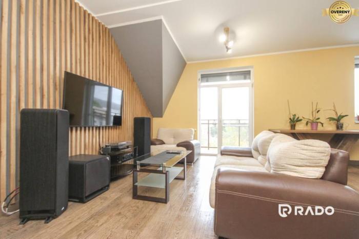 RADO Reality Vám ponúka na predaj veľkometrážny 4-izbový mezonetový byt s vlastným kúrením v obci Melčice-Lieskové. Bytový dom bol postavený v roku 2009. Jedná sa o 4-podlažnú tehlovú bytovku bez výťahu. Výhodou tohto bytu je, že sa nachádza na najvyššom poschodí a nebude Vám nikto dupať nad hlavou. Z bytu je tiež krásny výhľad na obe strany. Za bytovkou sa nachádzajú len polia, lúky a lesy. Pri troche štastia sa budete môcť pokochať pasúcimi sa srnkami. K bytu prislúcha aj pivnica s rozlohou približne 3m2 a 2 balkóny. Jeden v obývačke a druhý v spálni.