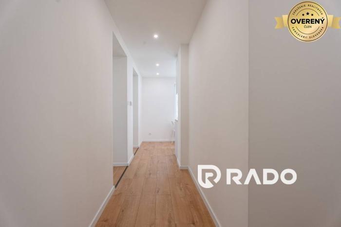 Byt prešiel kompletnou rekonštrukciou, ktorá zahŕňala výmenu elektrických rozvodov, vybudovanie nového murovaného jadra, inštaláciu nového elektrického podlahového kúrenia, nový elektrický bojler na ohrev vody, sadrokartónové stropy, nové sadrové omietky, kvalitné laminátové podlahy a kuchynskú linku vyrobenú na mieru. Byt je vybavený plastovými oknami a bezpečnostnými vstupnými dverami.