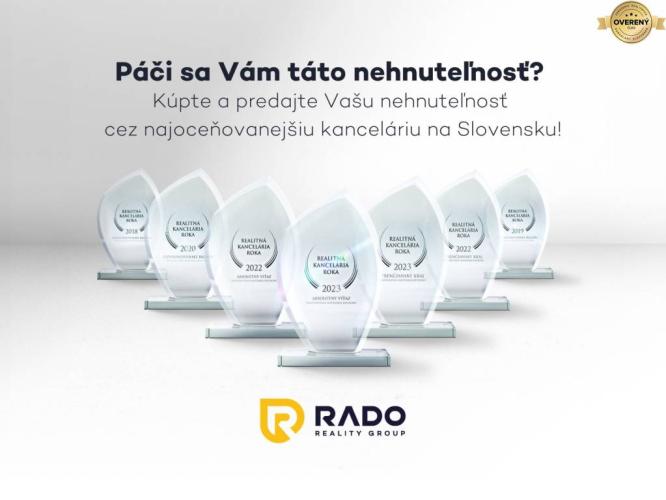 RADO Reality Group je ocenená Realitnou úniou ako najlepšia realitná kancelária na Slovensku za rok 2023. Okrem iného sme držiteľmi ďalších 7 prestížnych ocenení.