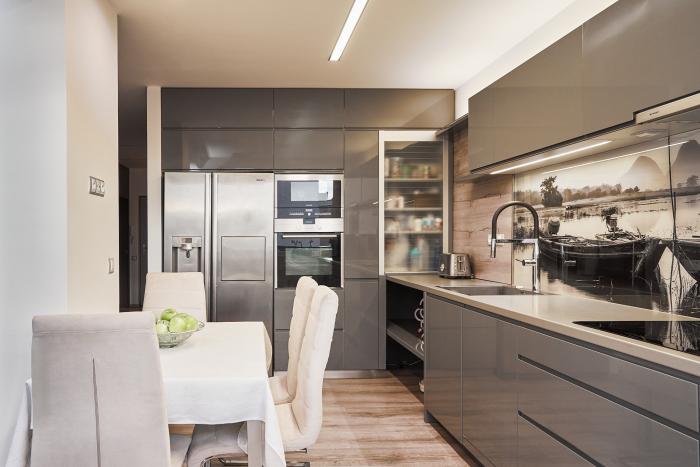 • slnečnej obývacej izby so vstupom na lógiu, prepojenej s kuchyňou so zabudovanými spotrebičmi na mieru a so vstupom na druhú lógiu