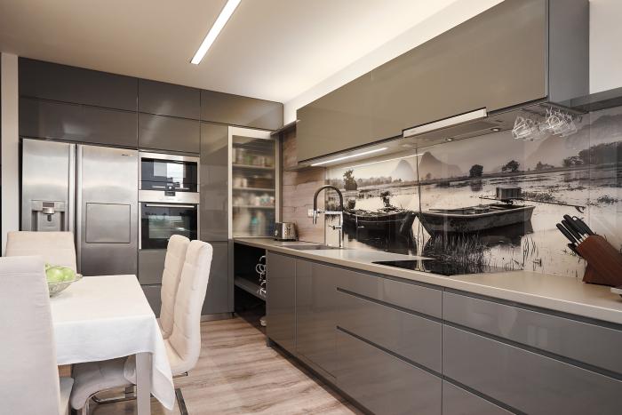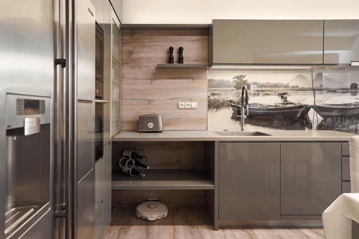 • slnečnej obývacej izby so vstupom na lógiu, prepojenej s kuchyňou so zabudovanými spotrebičmi na mieru a so vstupom na druhú lógiu