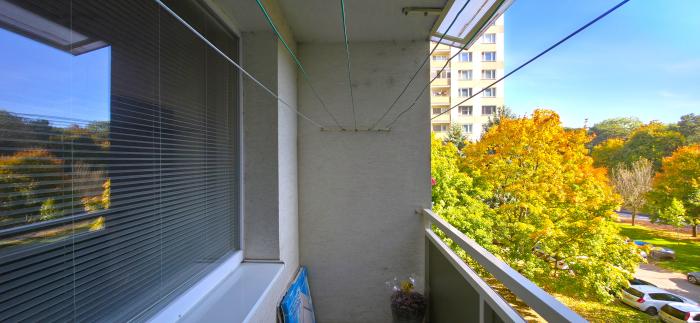 Byt je orientovaný z juhovýchodu na juh, má praktickú a vylepšenú dispozíciu. Pozostáva z troch nepriechodných izieb, kuchyne s jedálňou, loggiou, predsiene, toalety a kúpeľne s vaňou.