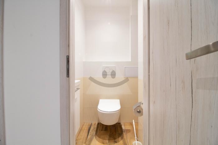 - Vstupnej chodby,- Veľkej obývacej izby spojenej s kuchyňou (orientácia do ulice)- Spálne so samostatným šatníkom (orientácia do vnútrobloku)- Kúpeľne so sprchovým kútom- WC