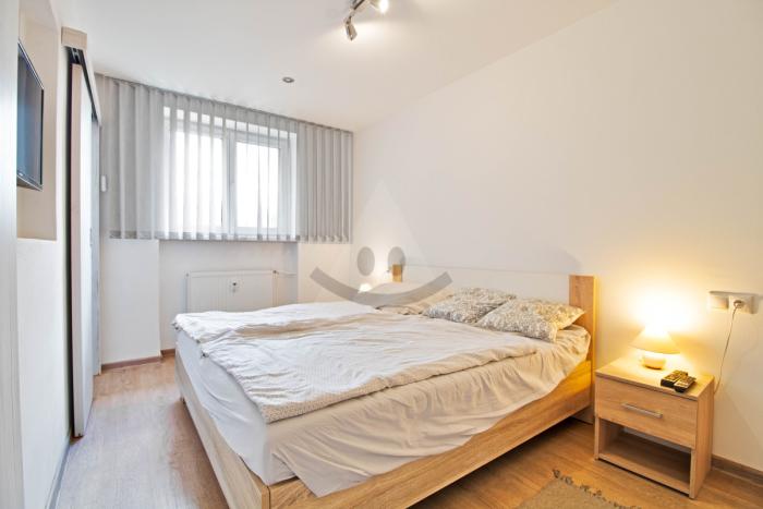 Pekný moderný a veľký 2 izbový komplet zariadený byt v centre mesta s garážou.