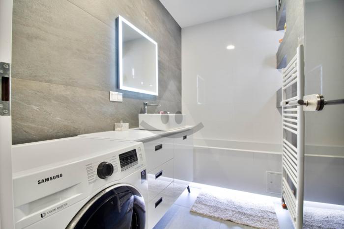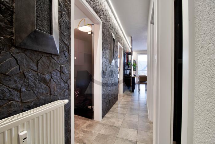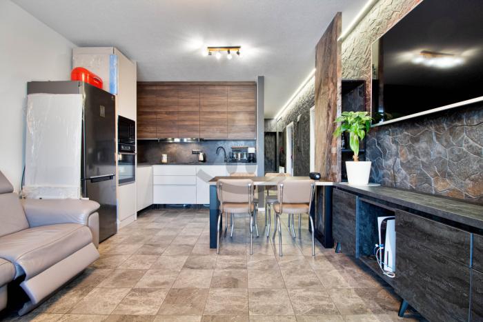 Ponúkame moderný 3-izbový byt v novostavbe na sídlisku Západ s loggiou a pivnicou, ideálny pre moderného človeka alebo menšiu rodinu. Byt je kompletne zariadený a predáva sa ako je na fotografiách, kožený elektricky nastavitelný gauč, kuchynská linka a všetky nábytky na mieru, jednoducho každý detail bol navrhnutý s dôrazom na kvalitu a štýl. V celom byte sú elegantné dlaždice a nenápadné dizajnové prvky, ako nástenná fontána v chodbe, ktoré dávajú priestoru charakter a originalitu.