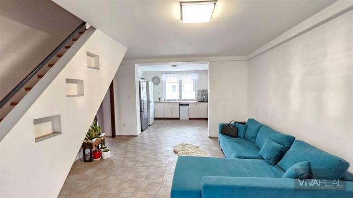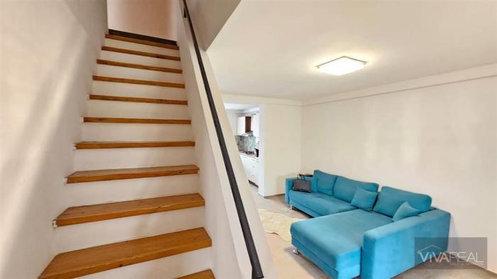 1. NP vstupná chodba, veľká obývacia izba spojená s kuchyňou, samostatná izba, schodisko, kúpeľňa so sprchovým kútom a WC. Z obývacej izby je prístup na krytú terasu.