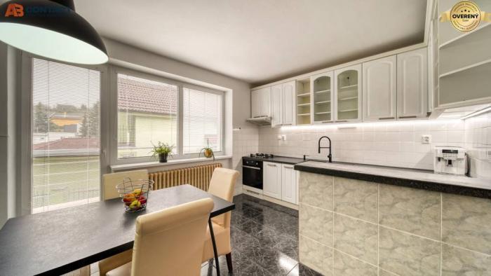 Príjemný 6-izbový rodinný dom s dvoma garážami na 531 m² pozemku, osadený v zátiší medzi rodinnými domami, kde hranicou pozemku preteká potok, na adrese Podhorská 14, obec Banka pri Piešťanoch.