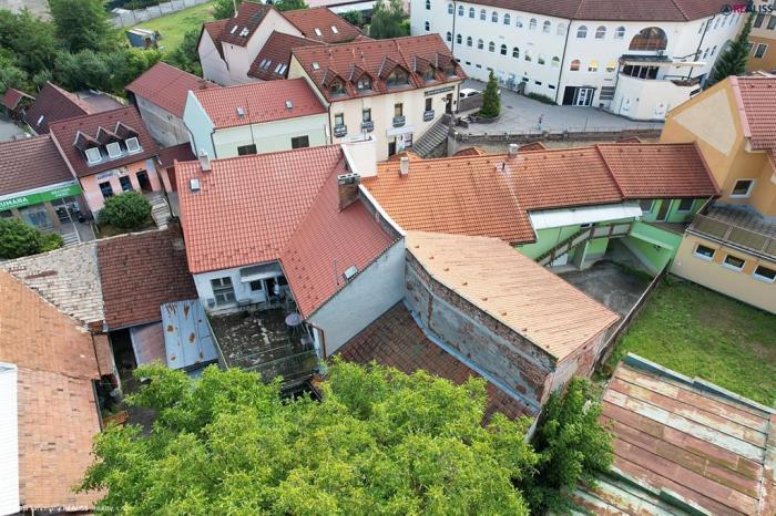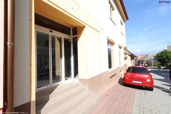 Dispozícia prízemia: priestor predajne 95 m2, dve kancelárie, sklad, toaleta, chodba so schodiskom na poschodie a do pivníc a vstupom do dvora.
