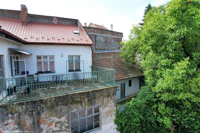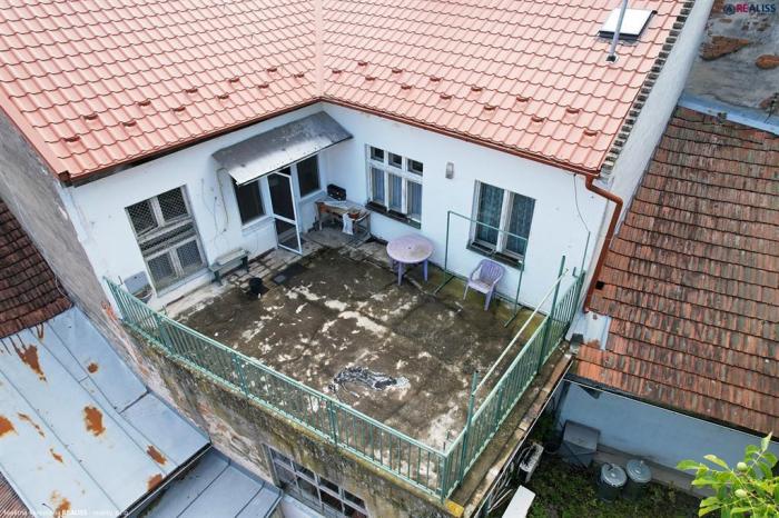 Opis: rodinný dom má dve obytné podlažia a je čiastočne podpivničený. Jednotlivé podlažia spája vnútorné schodisko. Byt na poschodí je vybavený veľkou slnečnou terasou orientovanou na juhozápadnú stranu. Na dvore sa nachádza aj menšia hospodárska budova so skladovacími priestormi.