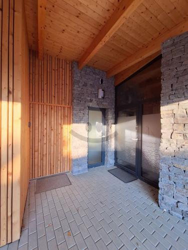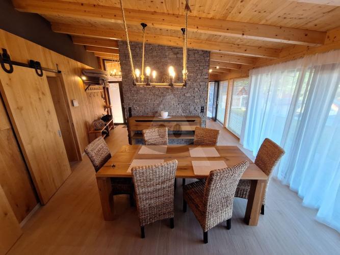Vysoký štandard nehnuteľnosti zaisťujú prvotriedne materiály a moderné technológie. Okná, vchodové dvere a terasové dvere sú riešené kvalitnými hliníkovými systémami SCHÜCO. Komfortné vykurovanie je zabezpečené elektrickým podlahovým kúrením v celom objekte (ovládané vez mob.aplikáciu), ktoré dopĺňa interiérový krb na drevené palivo, vytvárajúci príjemnú atmosféru v obývacej izbe. Vnútorné podlahy sú z keramickej dlažby. Vonkajšie keramické podlahy dopĺňa drevená podlaha na terase. Parkovanie pre dve vozidlá je riešené zámkovou dlažbou. Východne orientovaná terasa je vybavená grilom a automaticky ovládanou slnečnou clonou. Priamy vstup na terasu je možný z kuchyne, ako aj zo západnej strany (popri hlavnom vchode/parkovisku) cez uzamykateľné dvere. Nehnuteľnosť sa predáva so zariadením.