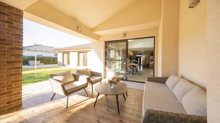 Dom je napojený na všetky inžinierske siete, okrem kanalizácie (voda, plyn, elektrina). V celom dome je podlahové kúrenie. V dome je inštalovaný zabezpečovací systém (alarm) v každej miestnosti a kamerový systém, okná sú vybavené exteriérovými sieťkami proti hmyzu, interiérovými žalúziami.