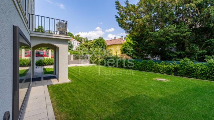 Elegantná fasáda, okenice a upravená zeleň tvoria harmonické spojenie s okolím. Nová výsadba dopĺňa pôvodnú vzrastlú zeleň, čím vzniká pokojná a súkromná atmosféra.