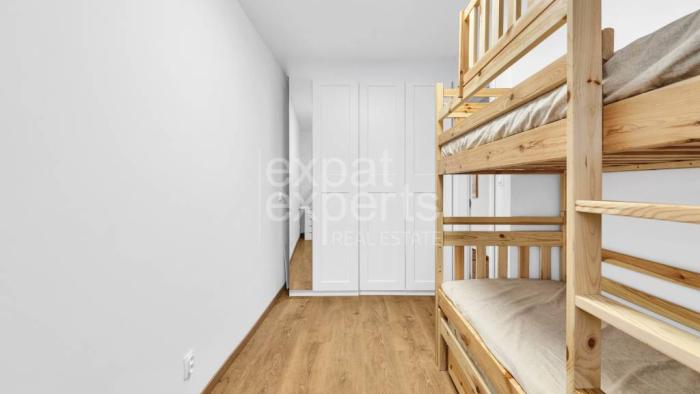 1. poschodia: plne vybavená kuchyňa s jedálenskou časťou, obývacia izba, hlavná spálňa s manželskou posteľou a úložným priestorom, štvrtá izba.