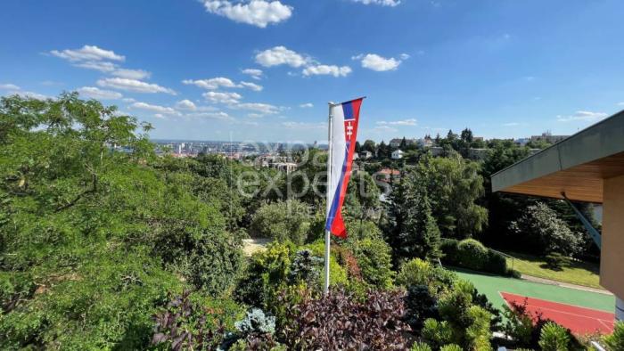 Ponúkame na predaj unikátnu vilu na Kolibe, s tenisovým kurtom, vnútorným bazénom, 7 spálňami, 5 kúpeľňami, s celkovom vnútornou plochou 990m2 a vonkajšími terasami a balkónmi o rozlohe 217m2. Krásna 20-ročná záhrada s dospelými stromami, jazierkami, vnútornými chodníkmi. Nádherné výhľady na celé okolie a Bratislavu. Vila má veľmi privátny príjazd, oplotenie, výhľady, pozemok pri hlavnej vile má šírku 40-50m a dĺžku 75m - ak hľadáte na Kolibe súkromie, je to jeden z mála pozemkov, ktoré ho v dnešnej dobe poskytujú.
