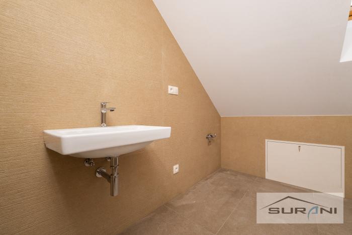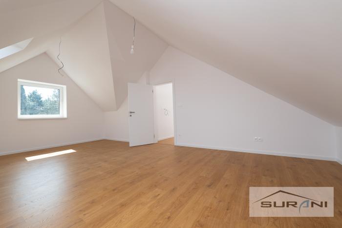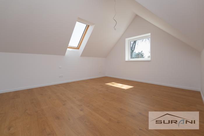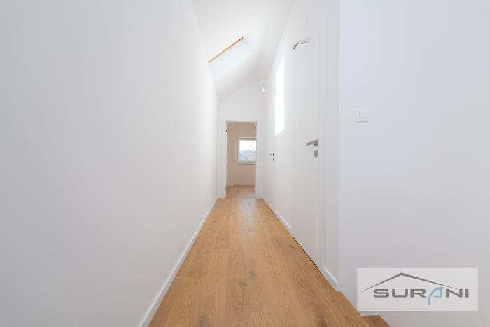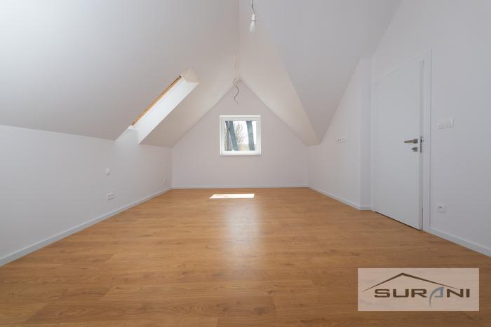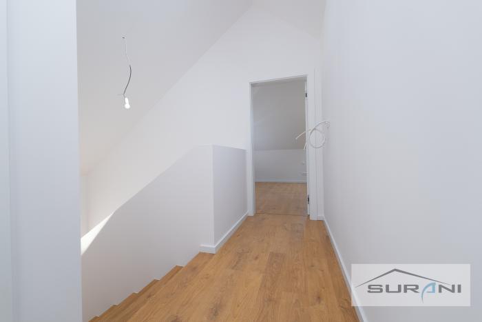Poschodie: chodba, kúpeľňa, samostatné WC, izba a priestranná spálňa.