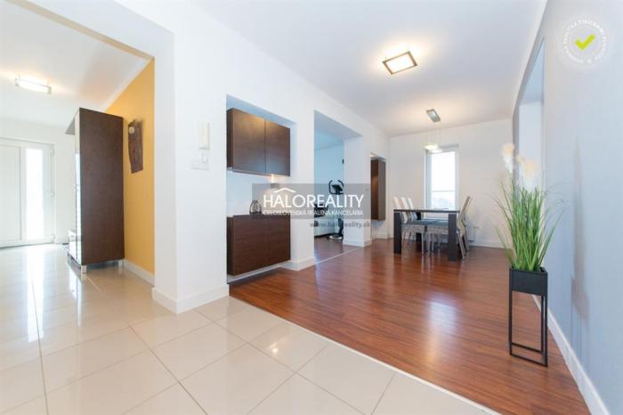 STAV NEHNUTEĽNOSTI: Dom skolaudovaný v roku 1968 je postavený z tehly s hrúbkou 40-50 cm, zateplený. Strecha je rovná, pokrytá krytinou z PVC pásov. Dom prešiel kompletnou precíznou rekonštrukciou, v rámci ktorej bola vymenená kompletne elektroinštalácia, rozvody vody, aj plynu. Vykurovanie a aj ohrev vody sú zabezpečené plynovým kotlom. Okná sú plastové so žalúziami a sieťkami proti hmyzu. Podlahy sú pokryté laminátovými parketami v kombinácii s dlažbou. Dvere sú drevené osadené v obložkových zárubniach. Na 2. nadzemnom podlaži je v každej obytnej miestnosti nainštalovaná klimatizácia. V pivnici je osadená sauna. Za domom sa nachádza zastrešená terasa s rozlohou cca 35 m2.