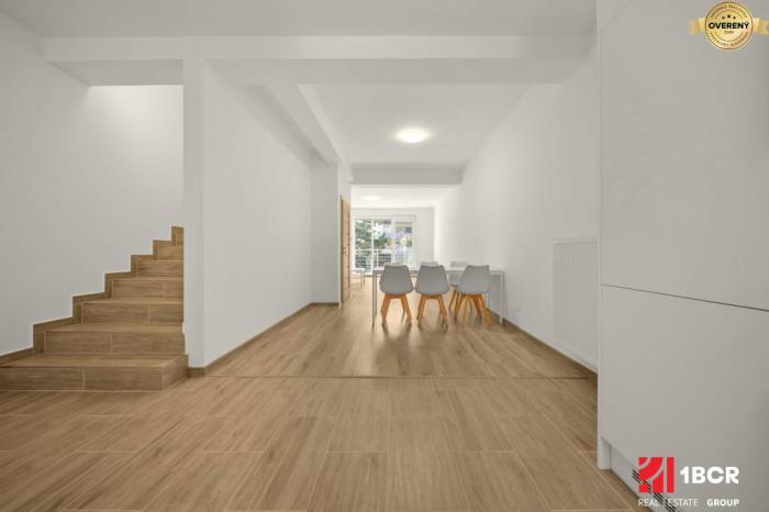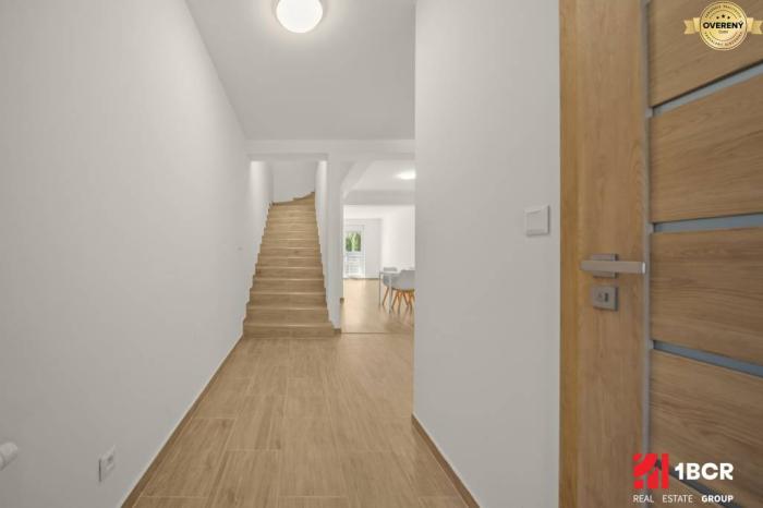 Dom prešiel kompletnou rekonštrukciou a je pripravený na okamžité nasťahovanie. Na prízemí sa nachádza priestranná miestnosť s kuchynským kútom a priamym vstupom na menšiu terasu, z ktorej vedú schody do záhrady. Pre Vašich hostí alebo klientov je k dispozícii samostatné WC.