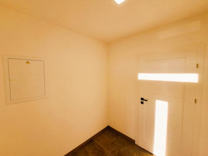 - ukončenie v ŠTANDARDE: vnútorné dvere zn. PORTA vrátane kľučky a zámky, obklady a dlažby, sprchovací kút s termostatickou batériou, vaňa s vaňovou batériou, umývadlo so skrinkou a batériou, LED zrkadlo, vinylové podlahy, soklové lišty