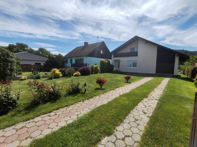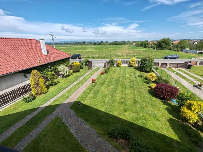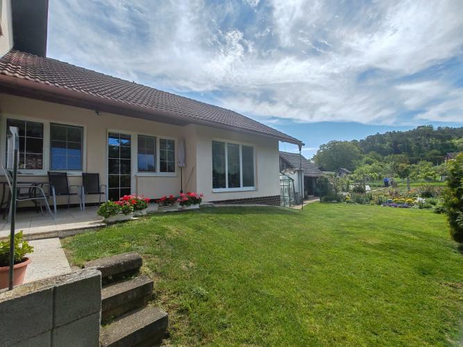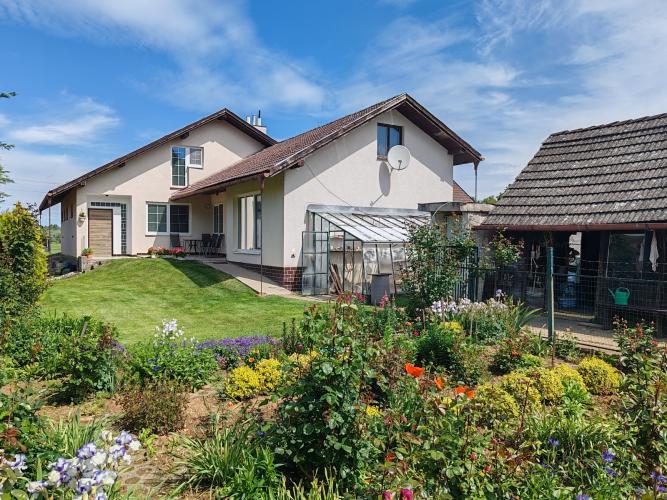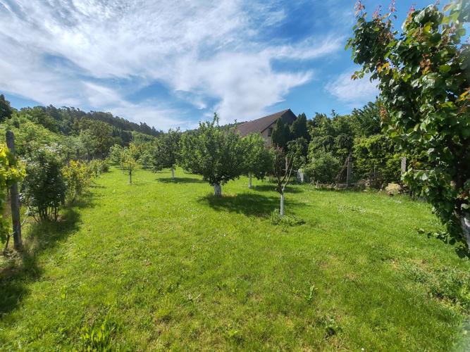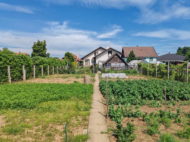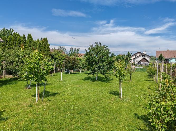 Pekný rovinatý pozemok o výmere cca 21 árov: vpredu okrasná časť ako aj vzadu pri terase s posedením, v druhej polovici pestovateľská časť so skleníkom, pivnicou pre zimné uskladnenie ovocia a zeleniny a drevená náraďovňa. Za domom kvetinová záhrada, zeleninová záhrada a ovocný sad.