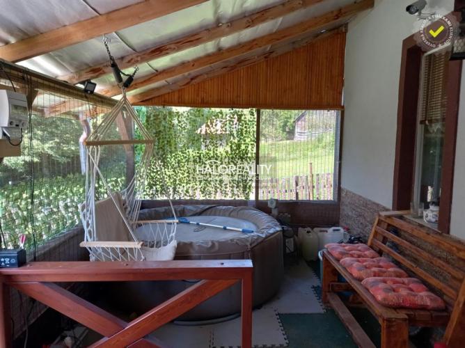 Drevená chatka je zateplená /r.2023/, má osadené plastové okná, TV signál od DIGI. Veľká uzavretá terasa, kde sa nachádza aj vírivka. Bezpečnosť zabezpečuje alarm aj kamerový systém.