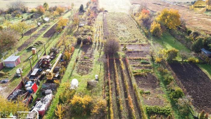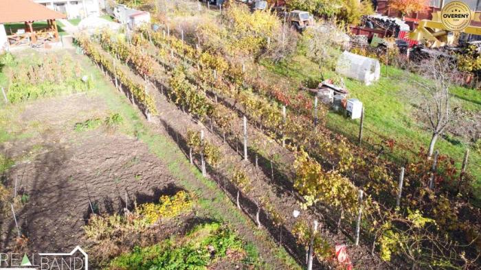 K domu je možné kúpiť aj garáž a záhradu s vinohradom o výmere 771 m², ktorá sa nachádza cez cestu od domu