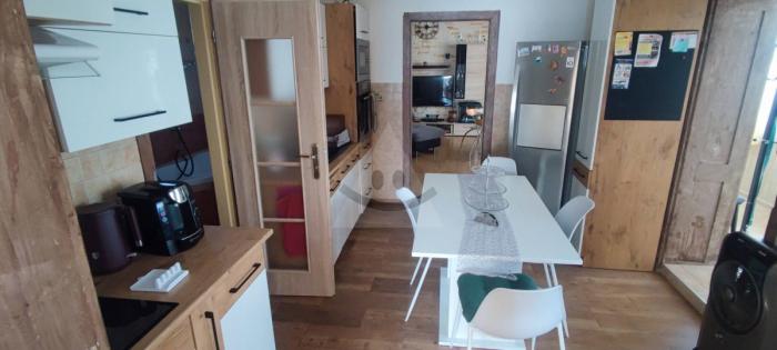 Dispozícia zahŕňa štyri samostatné izby, kuchyňu, kúpeľňu a dve nezávislé WC – ideálne pre väčšiu rodinu či viacgeneračné bývanie. Dom je napojený na mestskú vodu a zároveň disponuje vlastnou studňou, čo znamená maximálnu nezávislosť a úsporu. K dispozícii je aj priestranná pivnica a veľká povala s množstvom úložného priestoru.