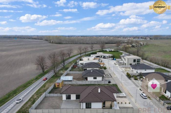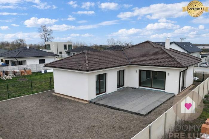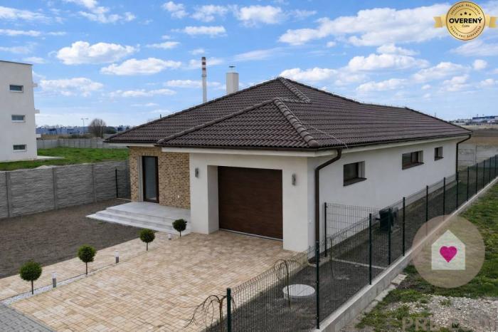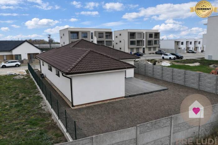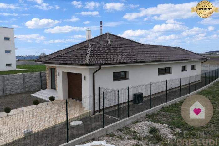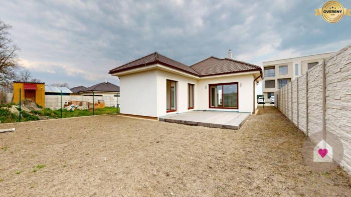 Jedná sa o samostatne stojaci rodinný dom s úžitkovou plochou 136,13m2, priestrannou terasou o výmere 40,78 m2, garážou s bránou na el. ovládanie o výmere 21 m2, úložným priestorom nad garážou, 2 vonkajším parkovacími státiami pred domom a kompletne oploteným pozemkom s priestrannou záhradou orientovanou na juhozápad. Kolaudácia prebehla v januári tento rok a predáva sa v štádiu holodom so všetkými predprípravami na : 2 fázovú klimatizáciu ( v obývačke a v chodbe), krb už s existujúcim komínom, externé žalúzie, alarm a kamerový systém, led osvetlenia v každej miestnosti a filtráciu vody zo studne či z verejného vodovodu. Možnosť dokončenia do štandardu za príplatok 20 000 € , prípadne úplné dokončenie aj s klimatizáciami, doplnkovým osvetlením a vonkajšími žalúziami za príplatok. Technologicky sa majitelia s domom vyhrali v podobe tepelného čerpadla, podlahového vykurovania s centrálnym termostatom (avšak možnosťou regulovania teploty v každej miestnosti), zásobníkom na teplú vodu, vnútornou prípojkou vody či už z verejného vodovodu či studne s pitnou vodou nachádzajúcej sa na pozemku aj s vonkajšou prípojkou vody na polievanie, kompletnou predprípravou na kuchynskú linku s ostrovčekom, plastovými oknami s protihlukovým 3 sklom, úložným priestorom v streche nad celou garážou či inými vychytávkami. Doplnkovým zdrojom vykurovania môže byť aj krb, ktorého predpríprava je v obývacej miestnosti.