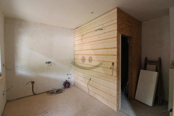 Ponúkame vám na predaj malý rodinný dom v obci Hiadeľ (20 km od Banskej Bystrice) s celkovou rozlohou pozemku 680m2. Jeho prednú časť tvorí rovina, terén za domom je svahovitý. Dom v účastnosti prechádza kompletnou rekonštrukciou, ktorá okrem iného zahŕňa nové inžinierske siete (elektrika, voda, septik), výmenu okien a dverí, novú strechu, oplotenie a terénne úpravy pred domom. Dispozícia domu pozostáva z dvoch miestností so zníženým stropom na prízemí (technická miestnosť a sklad) a kuchyne, oýbavej izby, spláne a kúpeľne na poschodí, pričom je možnosť (po určitých stavebných úpravách), využiť aj prestor v podkroví. Rekonštrukcia interiéru je aktuálne v nasledovnom stave.: nové priečky so stierkami, predpripravné podlahy na zloženie dlažby, alebo plávajúcej podlahy, kúpeľna s pripravenými rozvodmi. Pred hlavným vstupom do obytných miestnosťí nájddme uzavretú drevenú terasu.