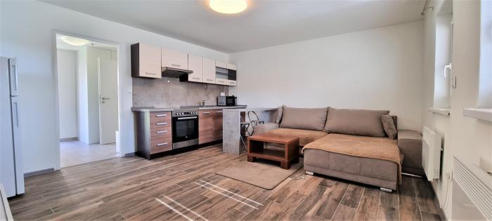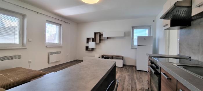 Dispozícia nehnuteľnosti: vstup, predsieň, v ktorej sa nachádza vstavaná skriňa a sklad/technická sekcia s el. bojlerom a práčkou. Z predsiene sa vchádza do kúpeľne so sprchovým kútom a toaletou. Oproti vstupu do nehnuteľnosti sa nachádza obývacia izba s oknami na juh a západ s kuchynským kútom so stolovaním.