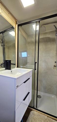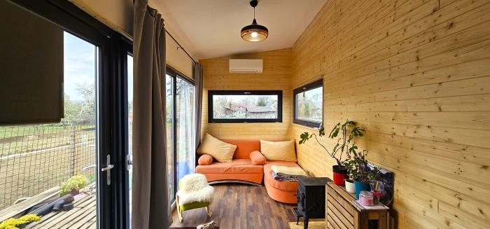 Mobilný domček bol dokončený a zariadený v r. 2023. Predáva sa s kompletným vybavením a spotrebičmi. Má novú kuchynskú linku s vysokým leskom, sedaciu súpravu, skriňu, kúpeľňový nábytok, klimatizáciu Dalkin, krbové kachle, sklokeramickú varnú dosku, chladničku s mrazničkou, automatickú práčku so sušičkou a el. bojler na ohrev vody.
