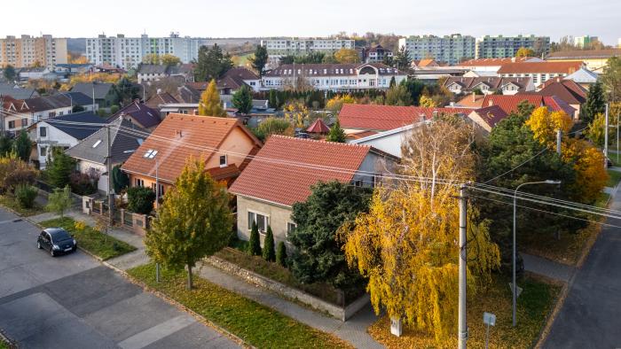 POZEMOK A LOKALITA Dom s predzáhradkou stojí na rovinatom, rožnom pozemku s výmerou 449 m² (cca 15 m x 30 m) na rozhraní ulíc Jarmočná a Tehelná. Lokalita pod centrom mesta zaručuje minimálnu frekvenciu vozidiel, ticho a zároveň perfektnú dostupnosť k obchodným reťazcom a službám.