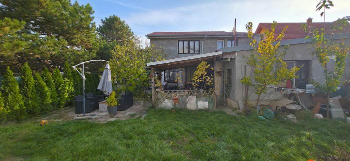Zázemie: Vedľa domu sa nachádza garáž, cez ktorú je prístup do pivnice (situovanej pod kuchyňou). Pred garážou je vybudovaná príjemná prekrytá terasa s vonkajším sedením.