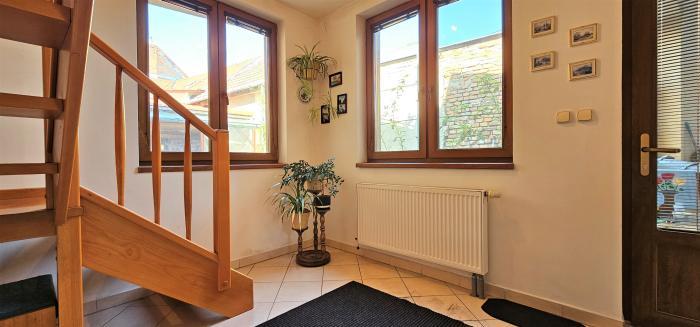 Nehnuteľnosť tvoria dva obchodno - administratívne priestory so zázemím, 1-izbový byt na prízemí v zadnej časti domu, 4-izbový podkrovný byt s terasou, kamenná vínna pivnica, drevený altánok, uzatvorené podbránie a dielňa.
